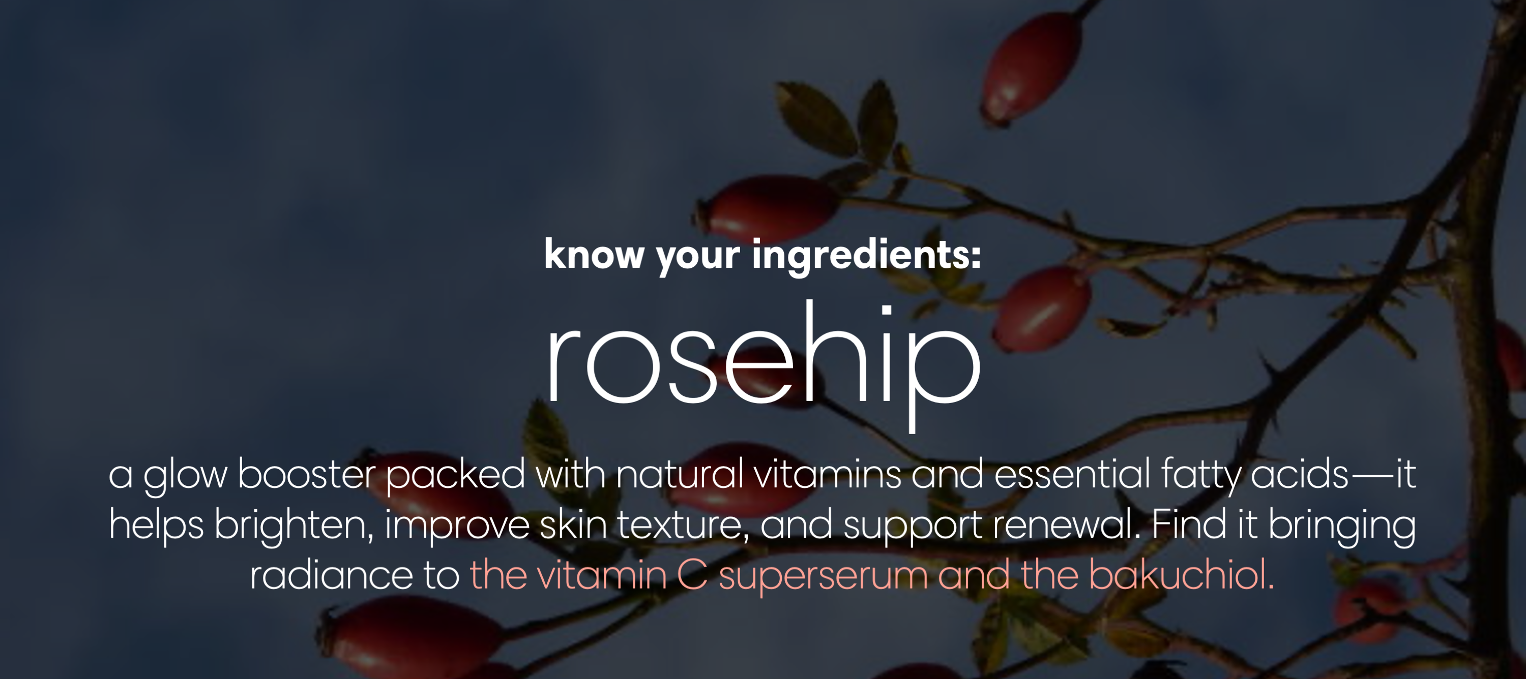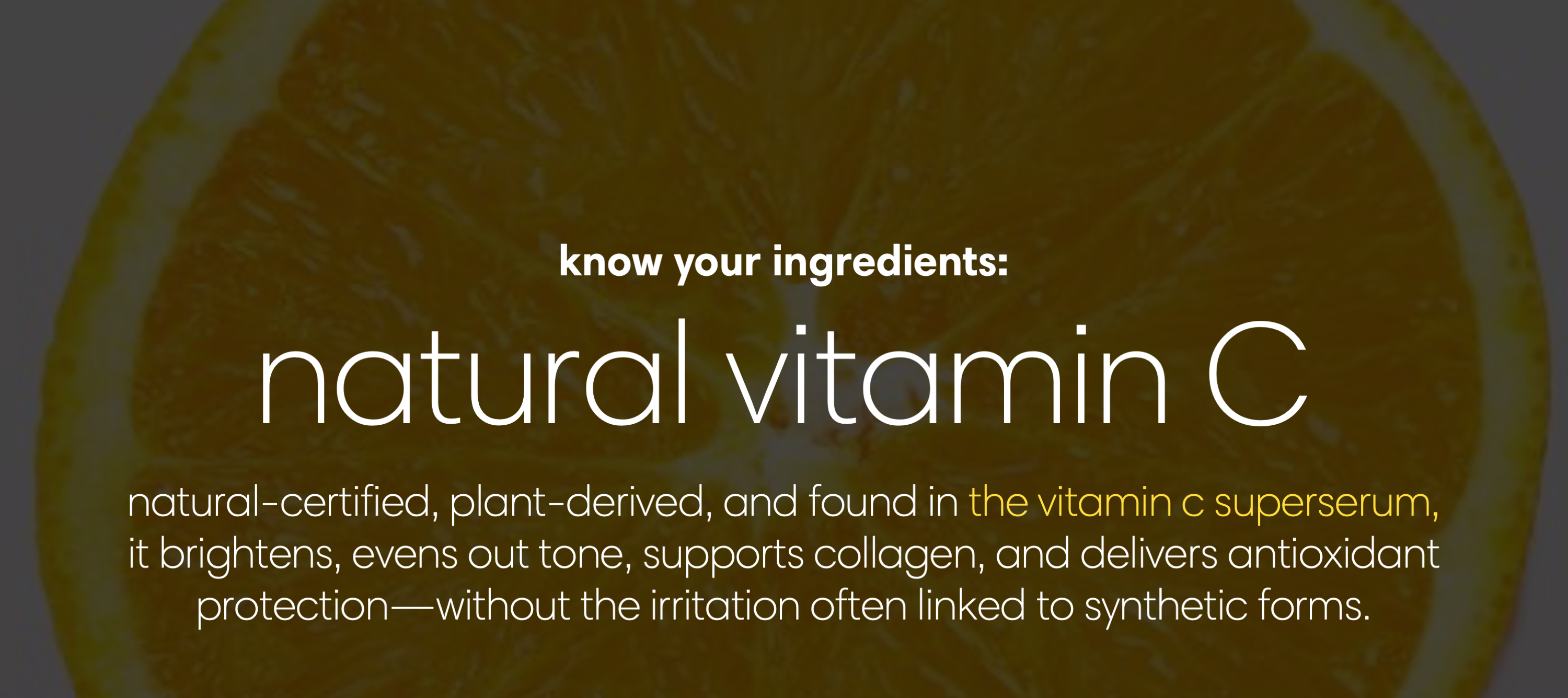 Hero Nutrients: 2% Natural Vitamin C (Ascorbyl Glucoside), 1% Ferulic Acid, 1% Sea-Buckthorn Oil, Vitamin E, Jojoba Seed Oil, Almond Oil, Avocado Oil, Rosehip Seed Oil, Sodium PCA, Hyaluronic Acid.